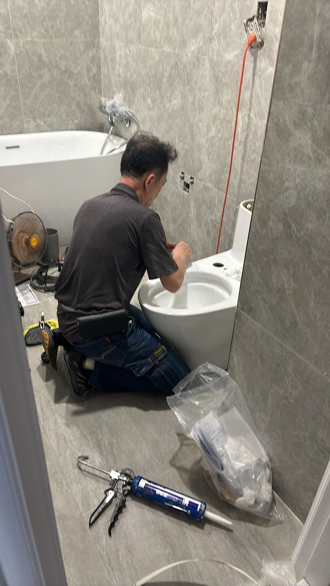 • 安裝馬桶、洗手台、淋浴間、浴缸、鏡櫃、毛巾架等設備,並進行最後的水電調整。